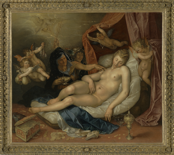 Hendrick Goltzius (1558-1617). Danaë endormie préparée pour Jupiter, 1603. Los Angeles County Museum of Art..
