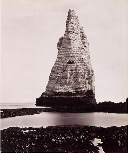 Alors que le procédé est encore récent, Étretat devient très tôt l’objet de prises de vues par les pionniers de la photographie sur papier, dès le début des années 1850. Les auteurs ne sont pas des professionnels, mais des aristocrates ou des bourgeois fortunés, en villégiature, passionnés par ce nouveau médium dont ils souhaitent explorer les potentialités. Leur liberté créatrice les conduit à produire des épreuves d’une grande inventivité, qui ne sont pas destinées à être commercialisées. Tous comptent parmi les membres fondateurs de la Société française de photographie, créée en 1854.
