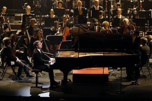 On ne voit de Jakob Lehmann que sa baguette qui bavarde avec les différents pupitres. Chamayou est au piano, et nous sommes heureux d’admirer ses mains depuis notre fauteuil.